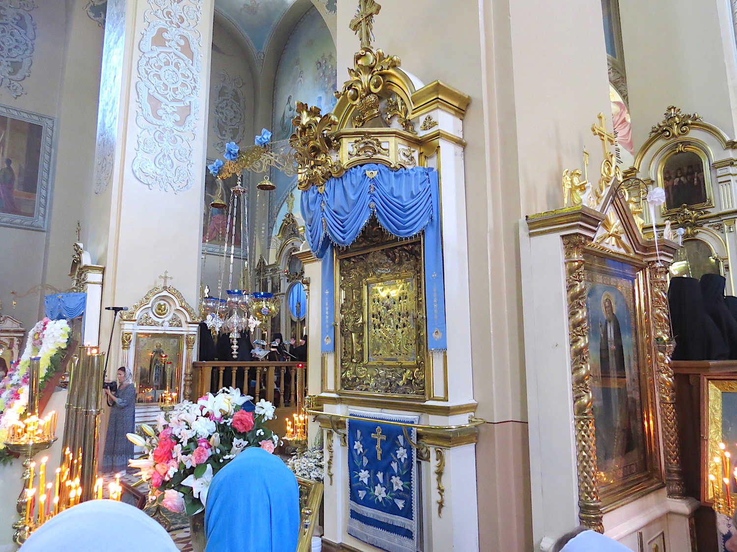 Nowadays the icon, covered in a silver gilded riza decorated with precious stones, stands at the right pylon of the central aisle of the Assumption cathedral. The source, from the shore of which the shepherd watched the sign, is considered holy. It does not freeze up in cold winters. Bathing in it has helped many to get rid of severe ailments. The old oak tree under which the image of the Dormition of the Mother of God was found is still preserved. Scientists believe that it is at least 1000 years old. Its height is 26.5 meters, the girth of the trunk is over 4 meters. It is also revered as a holy, and everyone who came here tried to chip off at least a piece of its bark. Today, a fence was built around the ancient giant. And next to it there is a reconstructed chapel of the 16th century, inside which there is an old chapel.