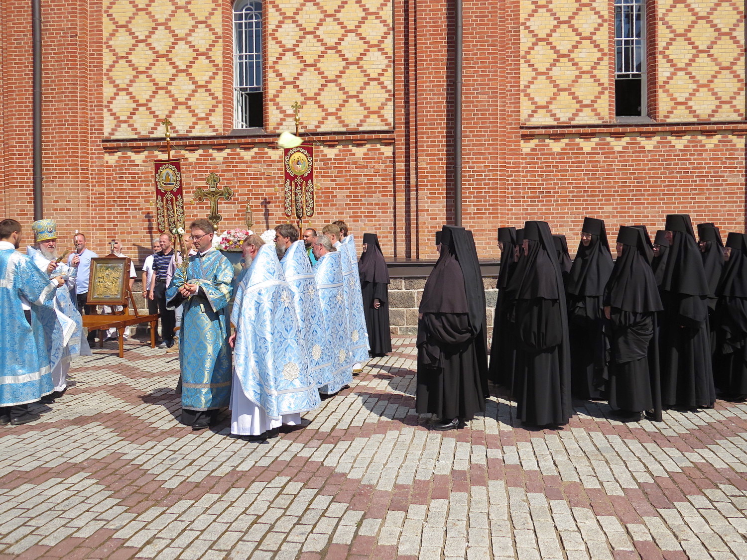 Pühtitsa (Est. – Sacred place) is a village in Vesenberg county, Estland province, on the border of Pskov and S.-Petersburg provinces. Petersburg guberniya, 16 versts to the northwest from Lake Peipsi; part of the village is inhabited by Russian peasants, part of the so-called “Poluvertsy” i.e., Oluteran Russians, who migrated here from across the Lake Peipsi for fishing in the 15th century. There is a church and a nunnery near Pyukhtitsa, on the Bogoroditskaya Mountain, founded in 1892. The latter has a health center, an asylum (30 girls), a school and workshops for icon painters, gold embroiderers, and swordsmen. F.A.Brockhaus and I.A.Efron Encyclopaedic Dictionary, S.-Petersburg, 1890-1907.