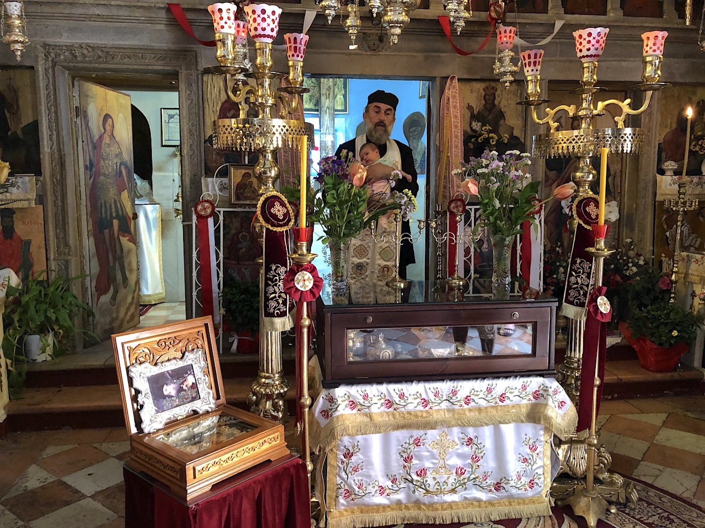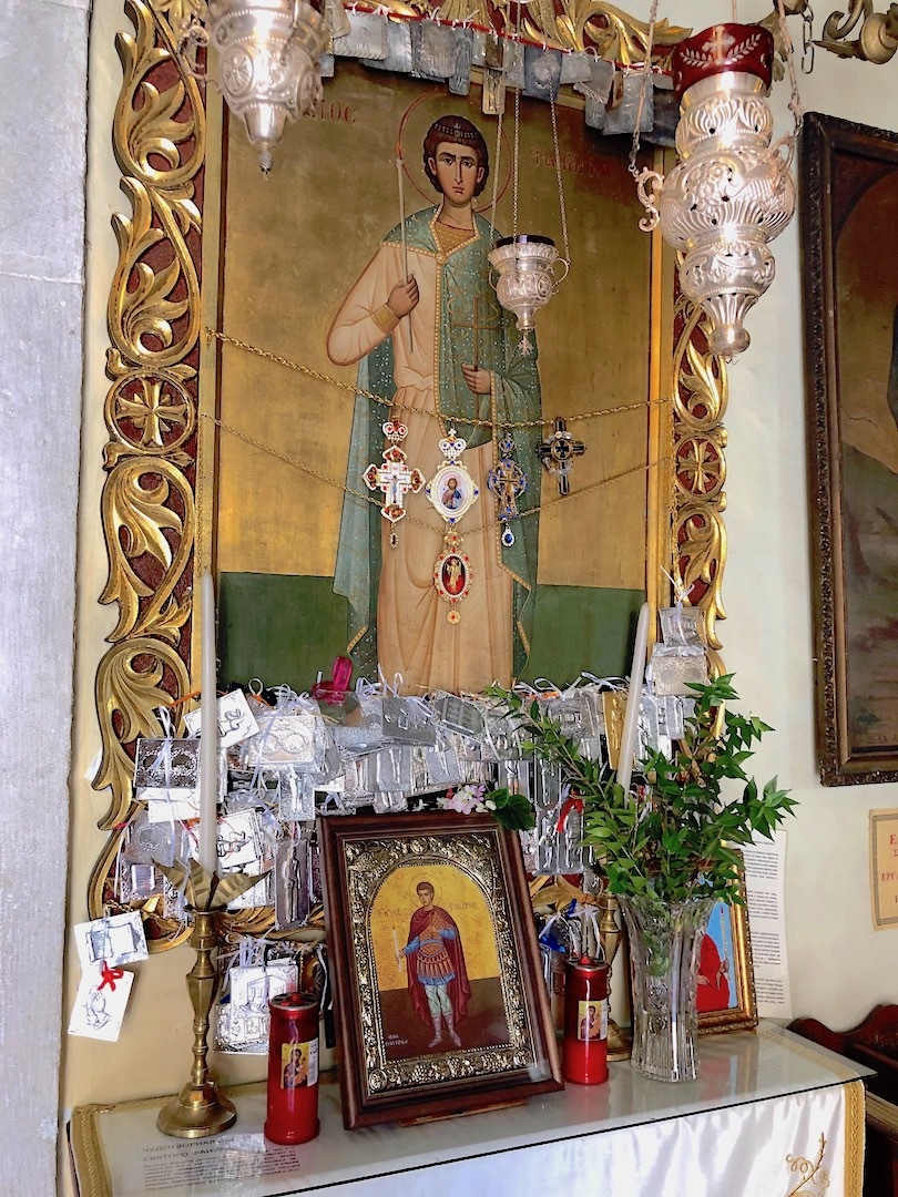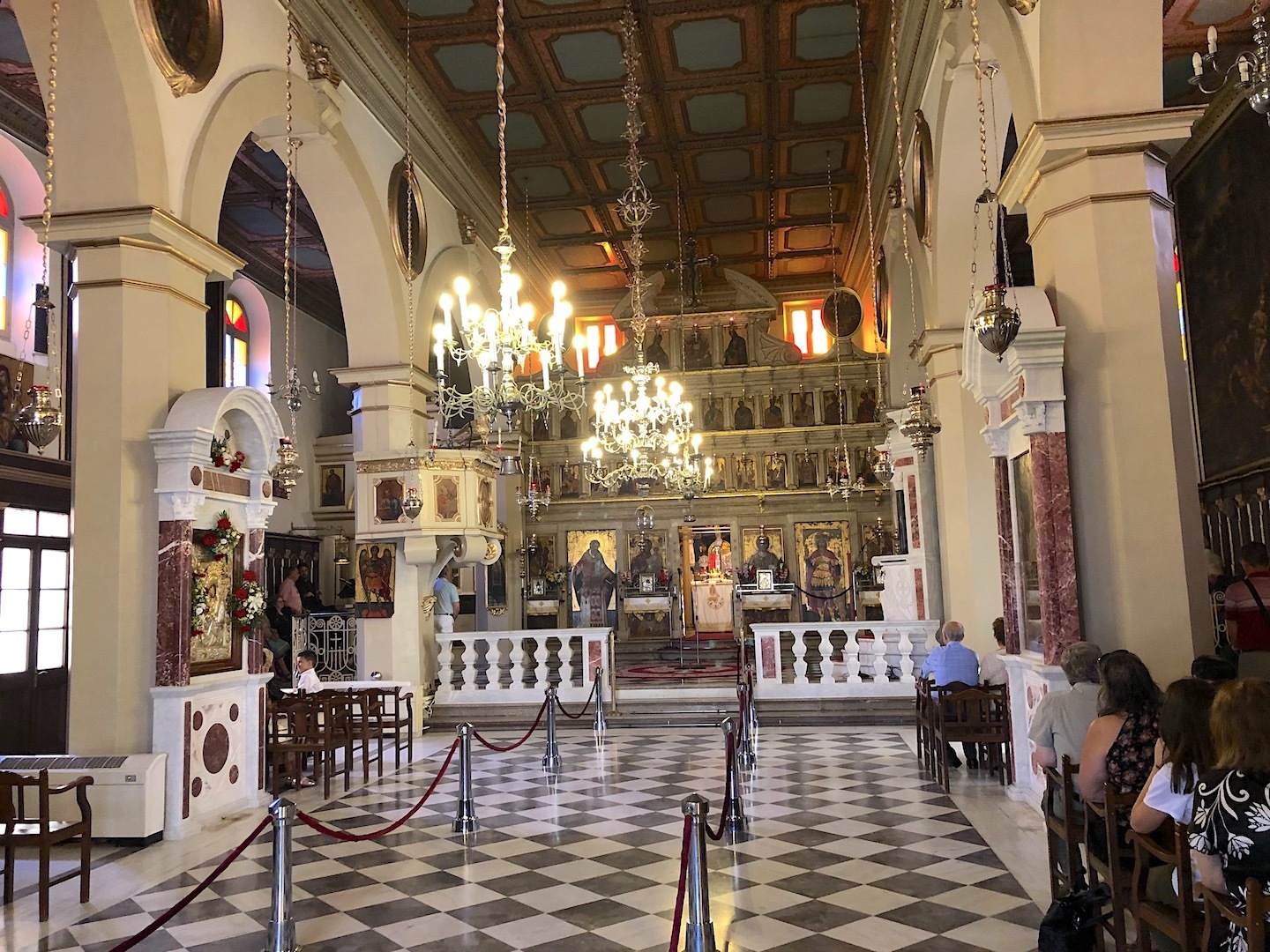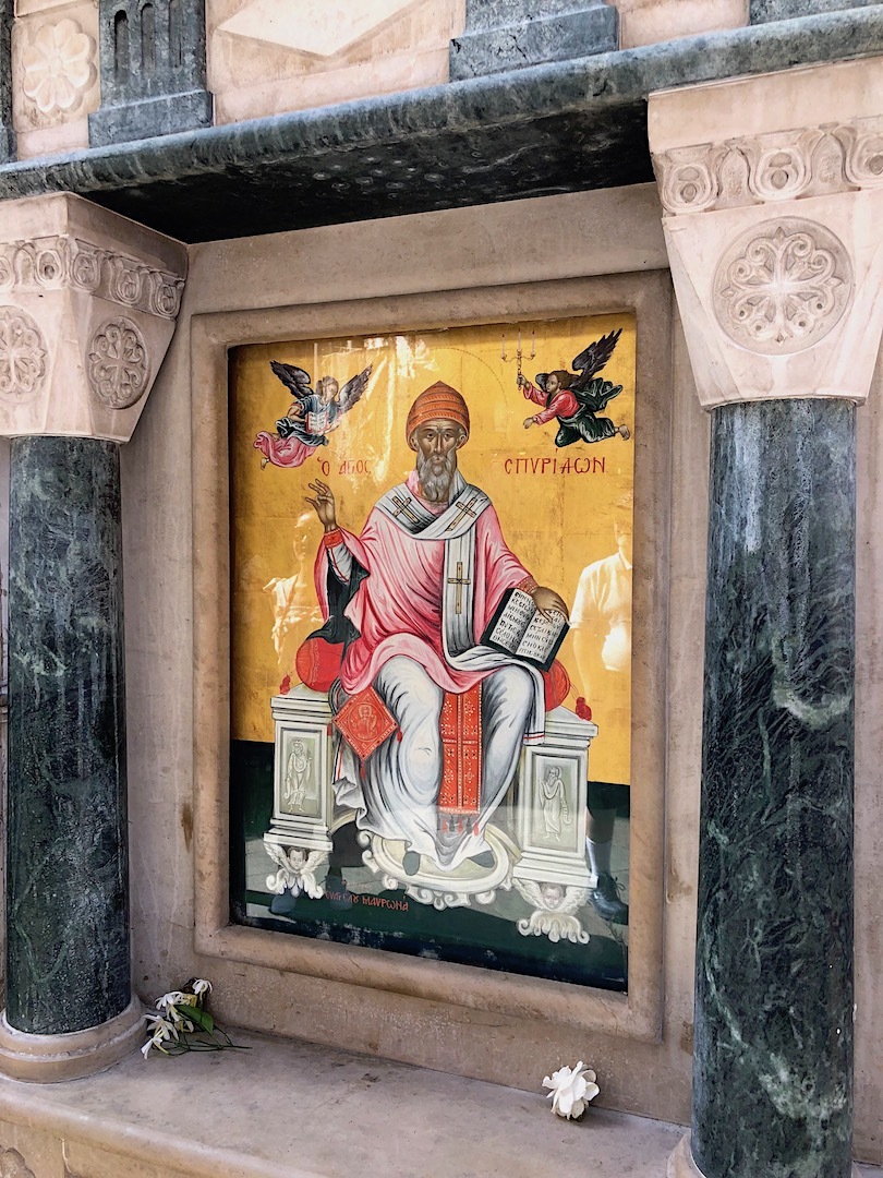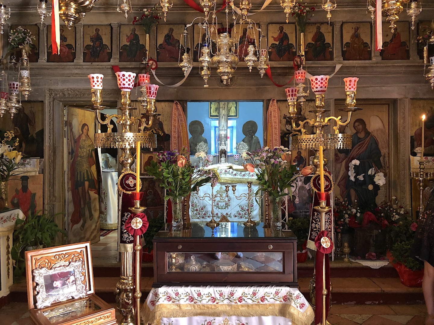 The silver sarcophagus of St. Spyridon, made in 1867 by special order in Vienna, is located in a small chapel to the right of the altar. There are a lot of churches on the island, which emphasizes the sincere deep religiosity of its inhabitants, but they have special feelings for St. Spyridon, who is considered the main patron of the island, and his relics are the most valuable treasure. It is enough to stay in the church where the holy relics rest for a few hours to understand how much the Saint is revered here. It seems that the temple is the center of attraction for all the inhabitants of the island. Throughout the day, it is never empty for a minute. And it’s not just about the many pilgrims. The locals come here with their joys and sorrows, asking for help and thanking the Saint for his mercy. The temple has two side doors opening onto parallel streets, and, hurrying about their business, the townspeople, passing through the temple, hurry to witness their love for him. For many of them, the morning begins with the fact that they go to venerate the relics, put a candle, ask for blessings for the upcoming day. After the Liturgy, a moleben is served in the church, and the shrine with the relics of the Saint is opened (sometimes it is opened at five o’clock in the evening). There is a huge queue of those who want to venerate the whole-bearing relics. Two priests are constantly reading notes. The number of children and young people in the temple is amazing. Children from an early age know how to behave in a holy place, where to put a candle, how to cross themselves. Old men and women who are in no hurry to go anywhere sit in the temple for hours in awe, watching what is happening. Candles are also sold here at the entrances to the temple. In addition to the usual candles, you can buy huge, almost the height of a person. They are placed on special candlesticks on the street in front of the entrance.