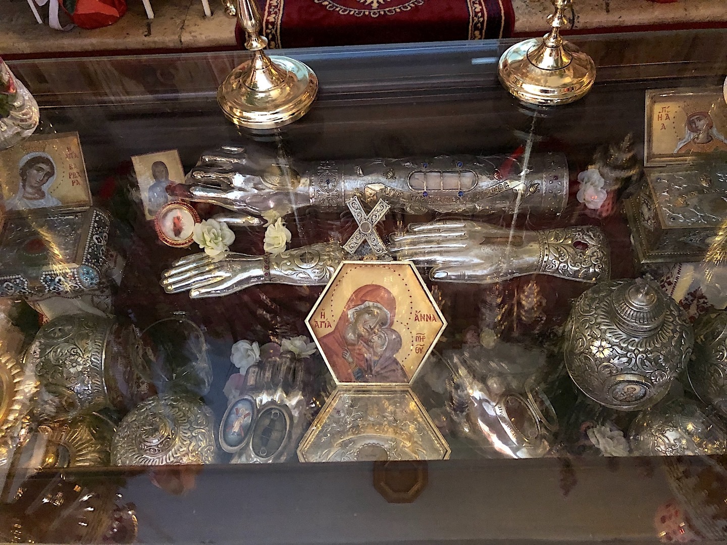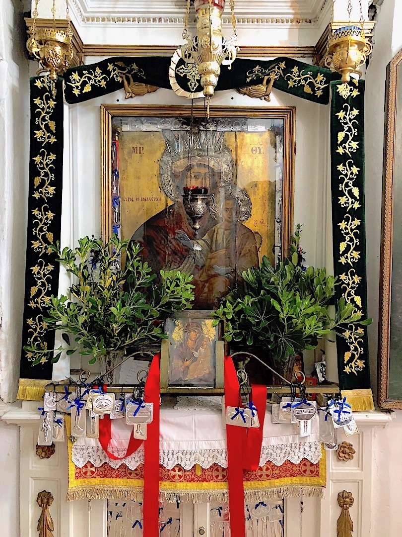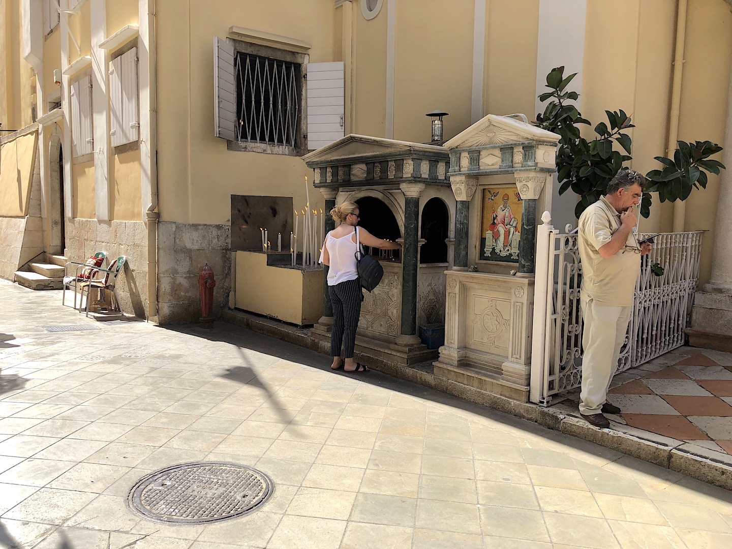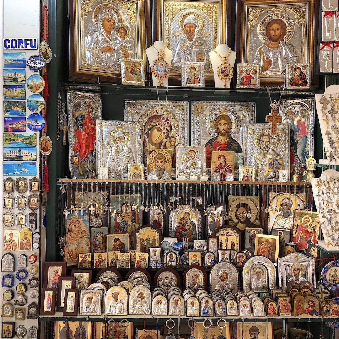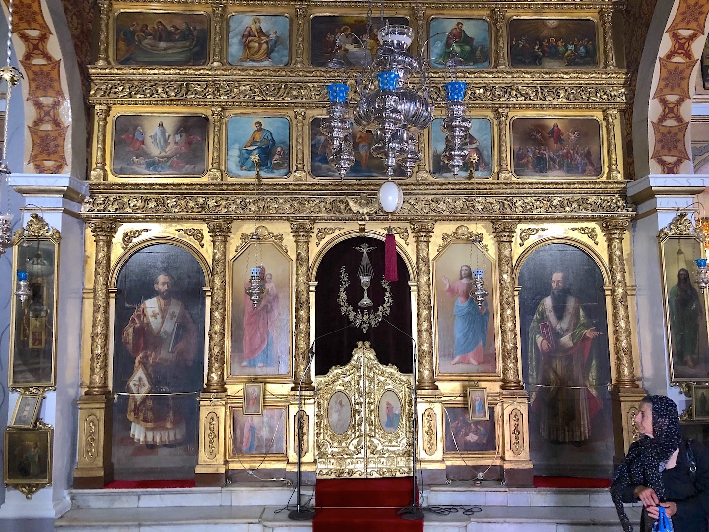 The silver sarcophagus of St. Spyridon, made in 1867 by special order in Vienna, is located in a small chapel to the right of the altar. There are a lot of churches on the island, which emphasizes the sincere deep religiosity of its inhabitants, but they have special feelings for St. Spyridon, who is considered the main patron of the island, and his relics are the most valuable treasure. It is enough to stay in the church where the holy relics rest for a few hours to understand how much the Saint is revered here. It seems that the temple is the center of attraction for all the inhabitants of the island. Throughout the day, it is never empty for a minute. And it’s not just about the many pilgrims. The locals come here with their joys and sorrows, asking for help and thanking the Saint for his mercy. The temple has two side doors opening onto parallel streets, and, hurrying about their business, the townspeople, passing through the temple, hurry to witness their love for him. For many of them, the morning begins with the fact that they go to venerate the relics, put a candle, ask for blessings for the upcoming day. After the Liturgy, a moleben is served in the church, and the shrine with the relics of the Saint is opened (sometimes it is opened at five o’clock in the evening). There is a huge queue of those who want to venerate the whole-bearing relics. Two priests are constantly reading notes. The number of children and young people in the temple is amazing. Children from an early age know how to behave in a holy place, where to put a candle, how to cross themselves. Old men and women who are in no hurry to go anywhere sit in the temple for hours in awe, watching what is happening. Candles are also sold here at the entrances to the temple. In addition to the usual candles, you can buy huge, almost the height of a person. They are placed on special candlesticks on the street in front of the entrance.