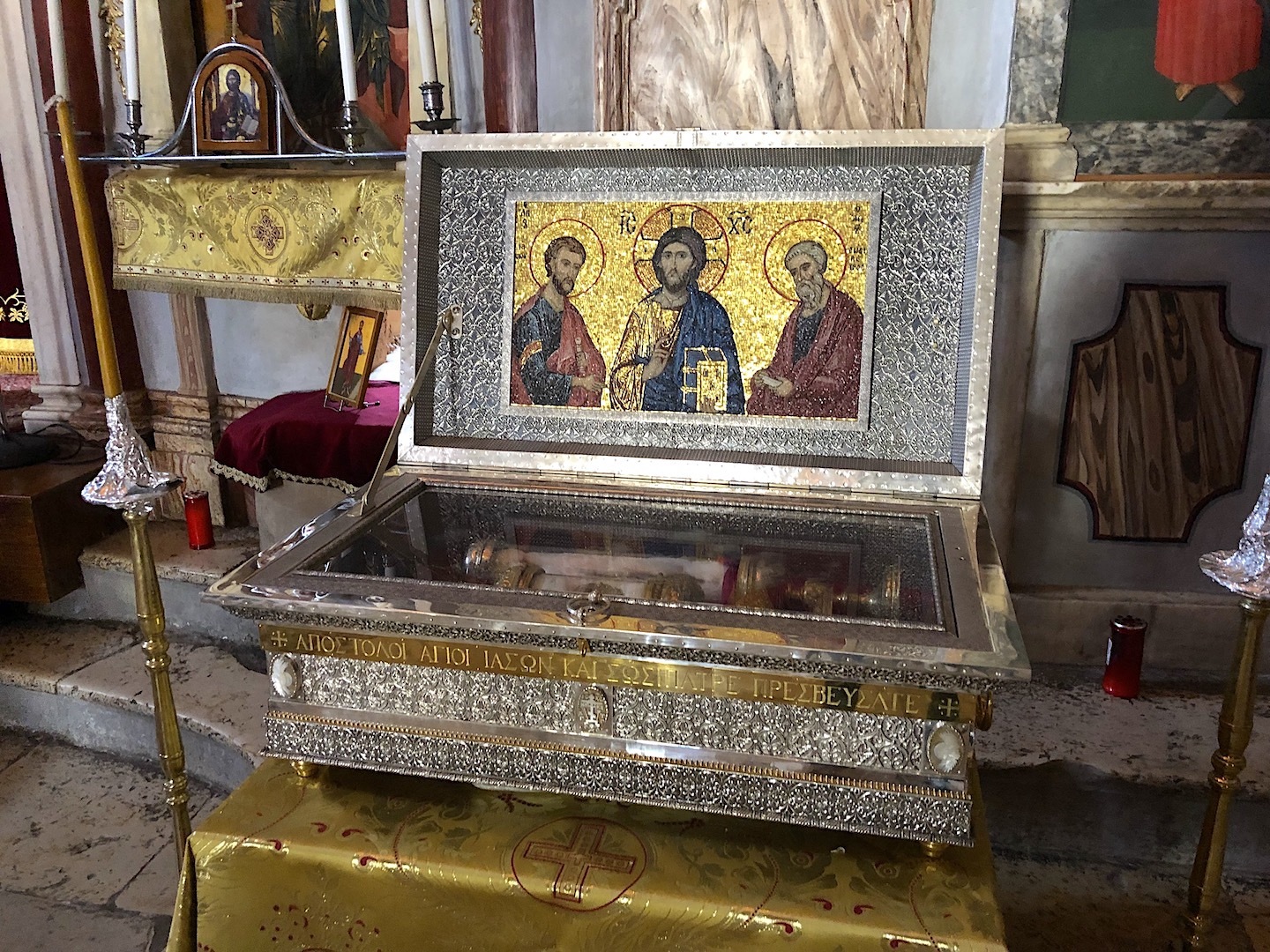 The current church of St. Spyridon is located in the midst of the picturesque narrow,” two donkeys”, in the words of Gerald Durrell, the streets of the old town. The architecture of the building is typical of the temples of the Ionian Islands. A high snow-white bell tower with a red dome and a clock rises above two or three-story buildings. It is a great landmark for visiting pilgrims. The church of St. Spyridon was considered the richest in the East, donations to the church were made not only by Orthodox, but also by Catholic Christians. Numerous contributions were made by the Russian Empress Catherine II and her son Emperor Paul I.