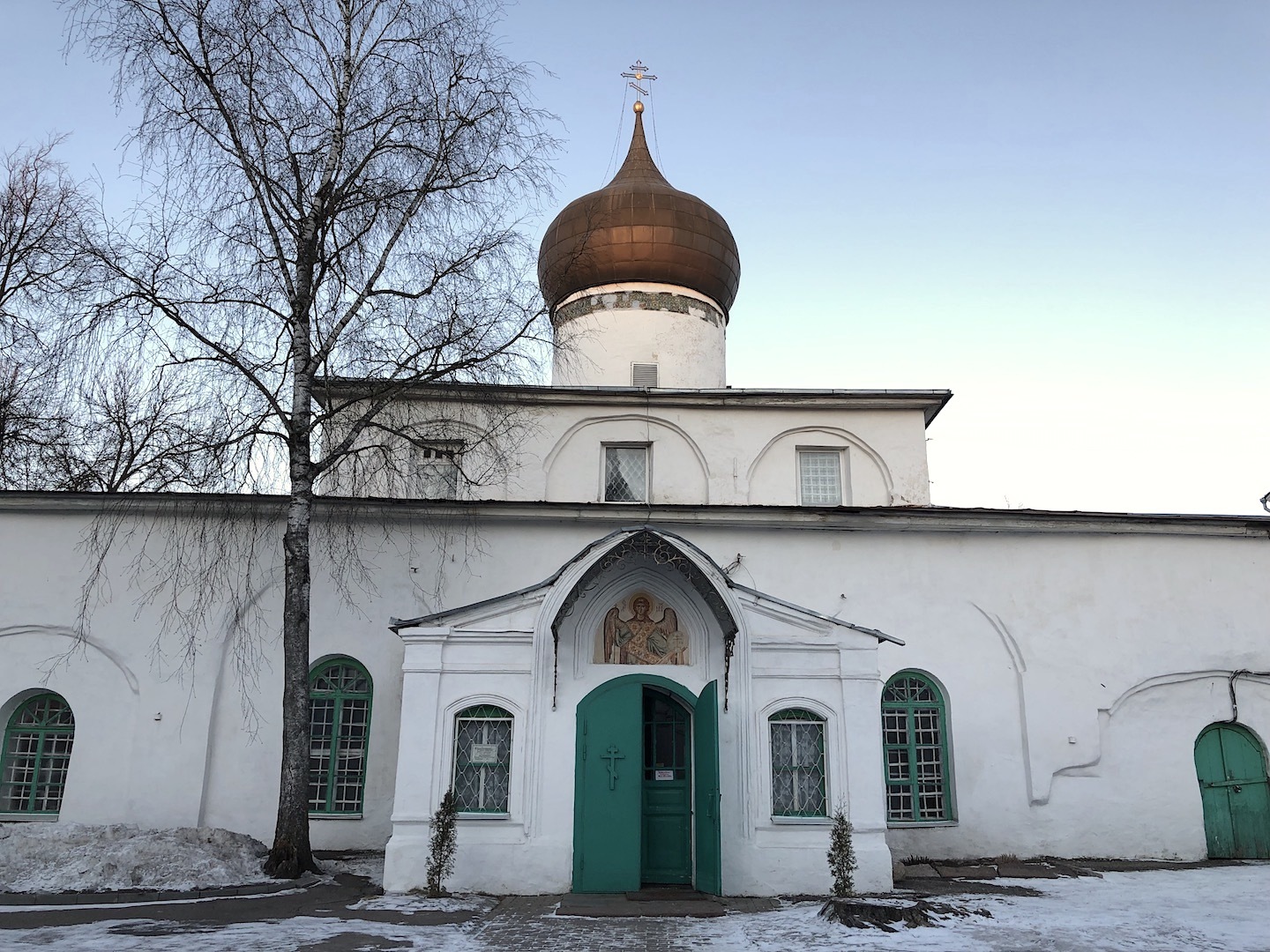 The House of the Holy Trinity – so since ancient times called the glorious city of Pskov. The appearance of one of the first Orthodox cities in Russia is closely connected with the Holy Trinity Cathedral. It was here, after the holy baptism in Constantinople in 957, that Princess Olga saw three light-bearing rays illuminating from the sky the elevation at the confluence of two rivers – the Pskov and the Great. She prayed for a long time and prophetically said that “in this place the city will be great, glorious and abundant”, and ordered to build a church in the name of the Holy Life-Giving Trinity