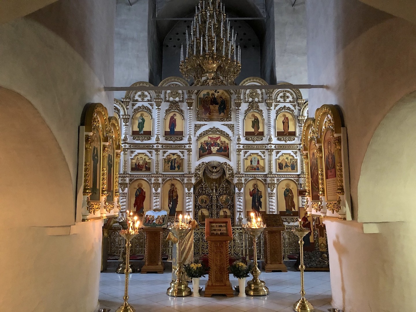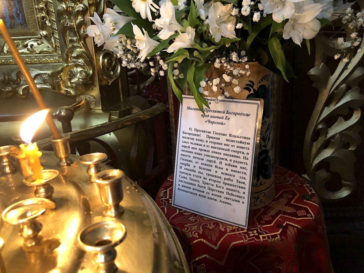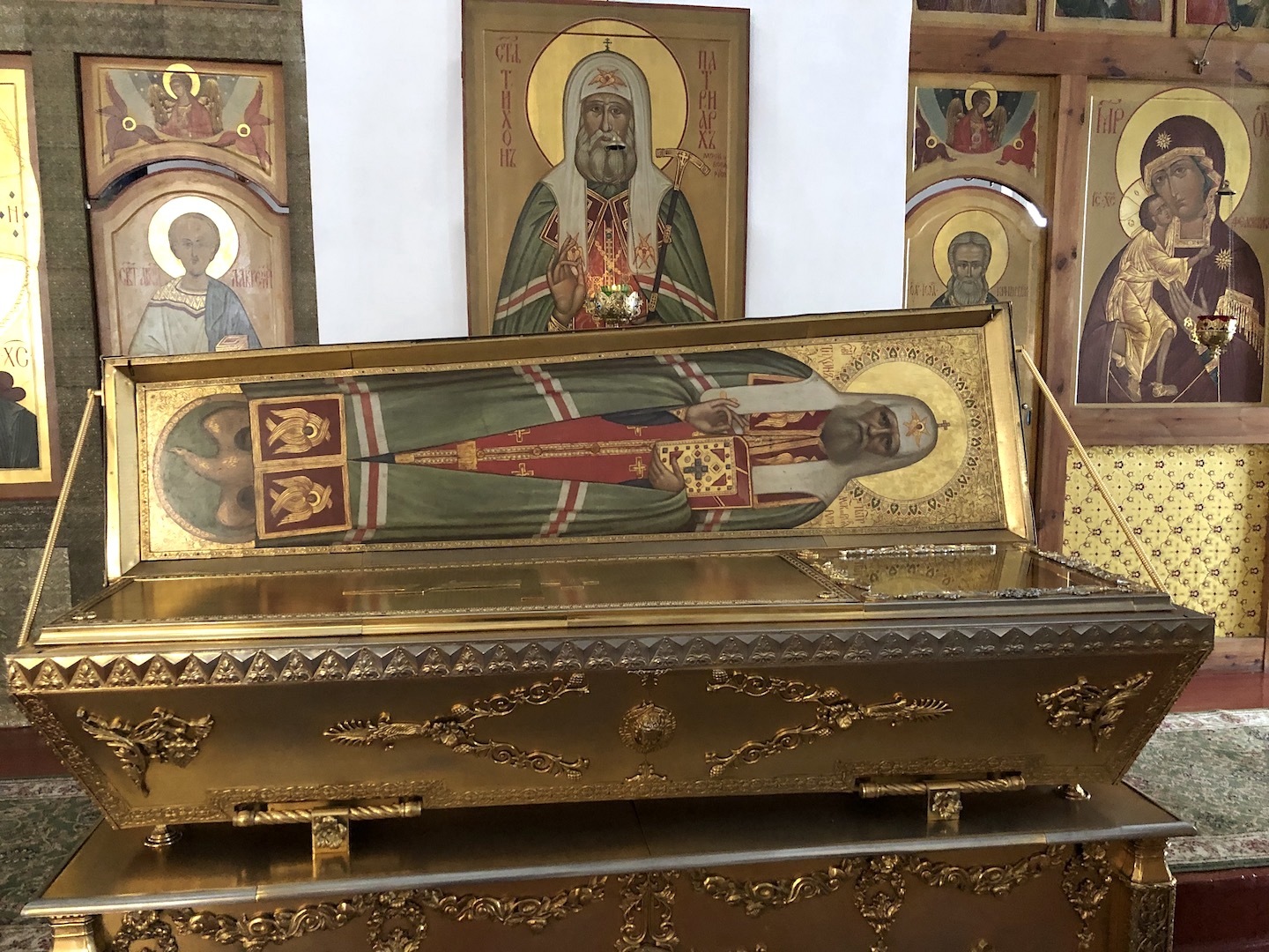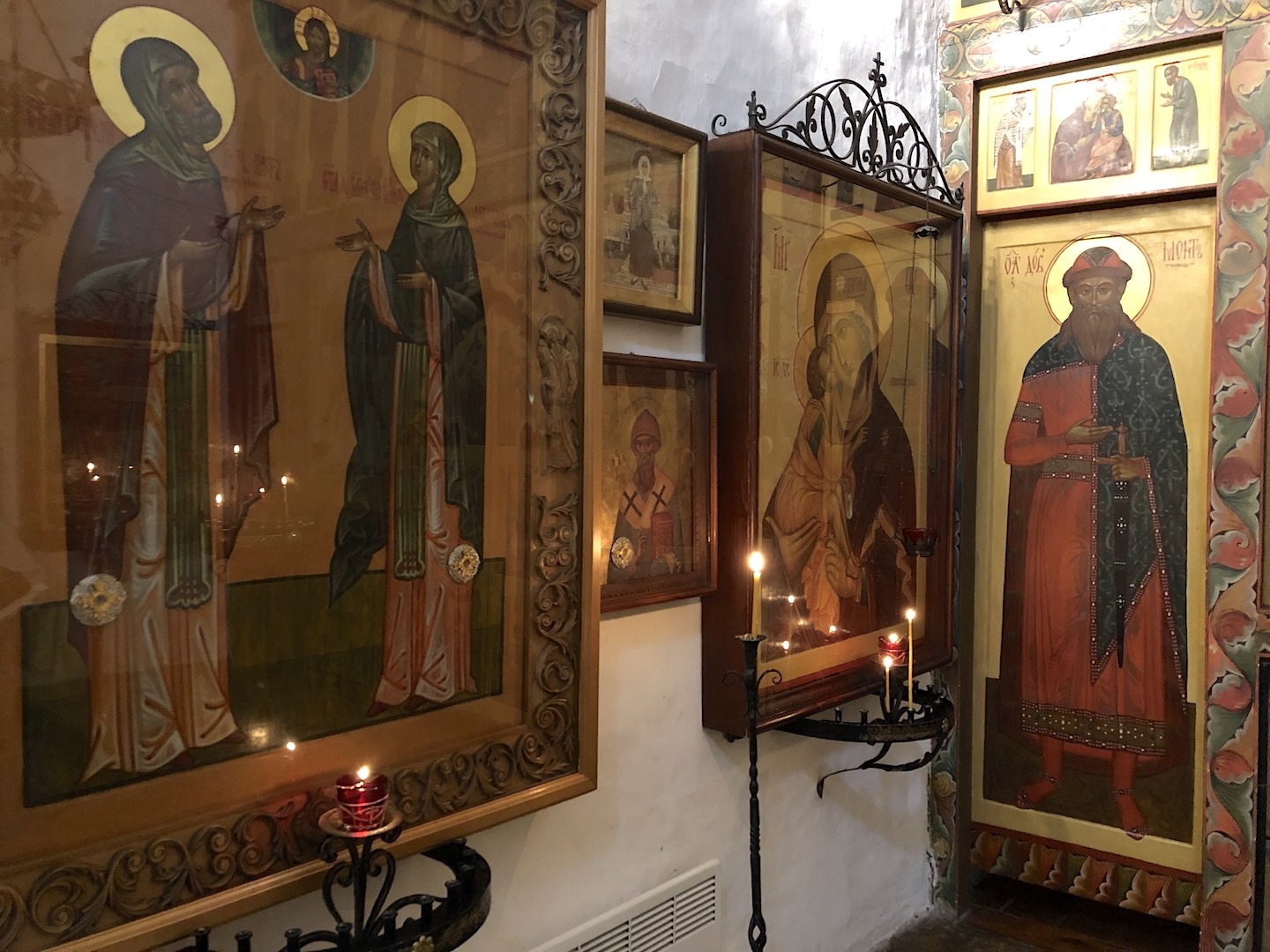 The revered shrine of the church – cancer with the relics of the saints: the blessed Princes Vsevolod-Gabriel, Dovmont-Timothy, St. Blas. St. Nicholas the Fool for Christ’s sake, and St. Nicholas the Fool for Christ’s sake. Joasaph the Abbot of Snetogorsky, as well as the Miraculous Icons of the Mother of God.