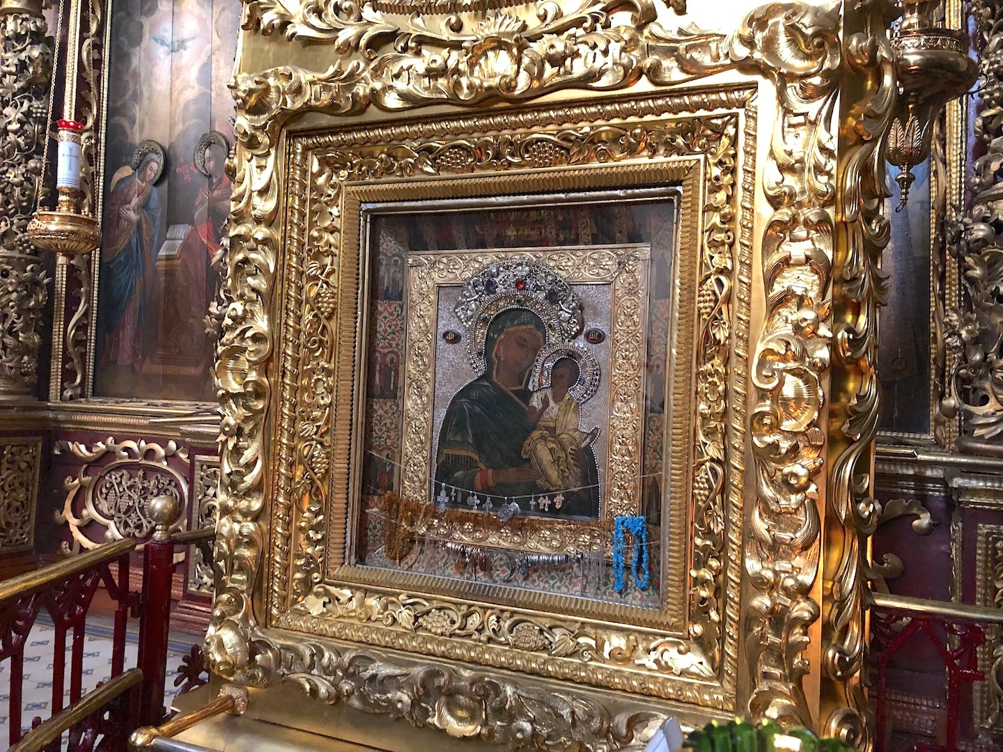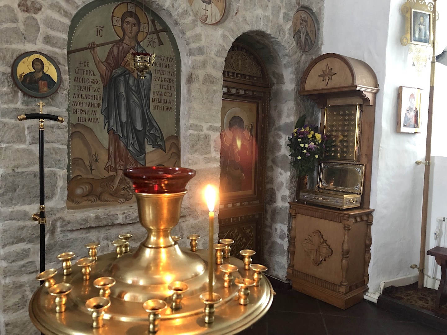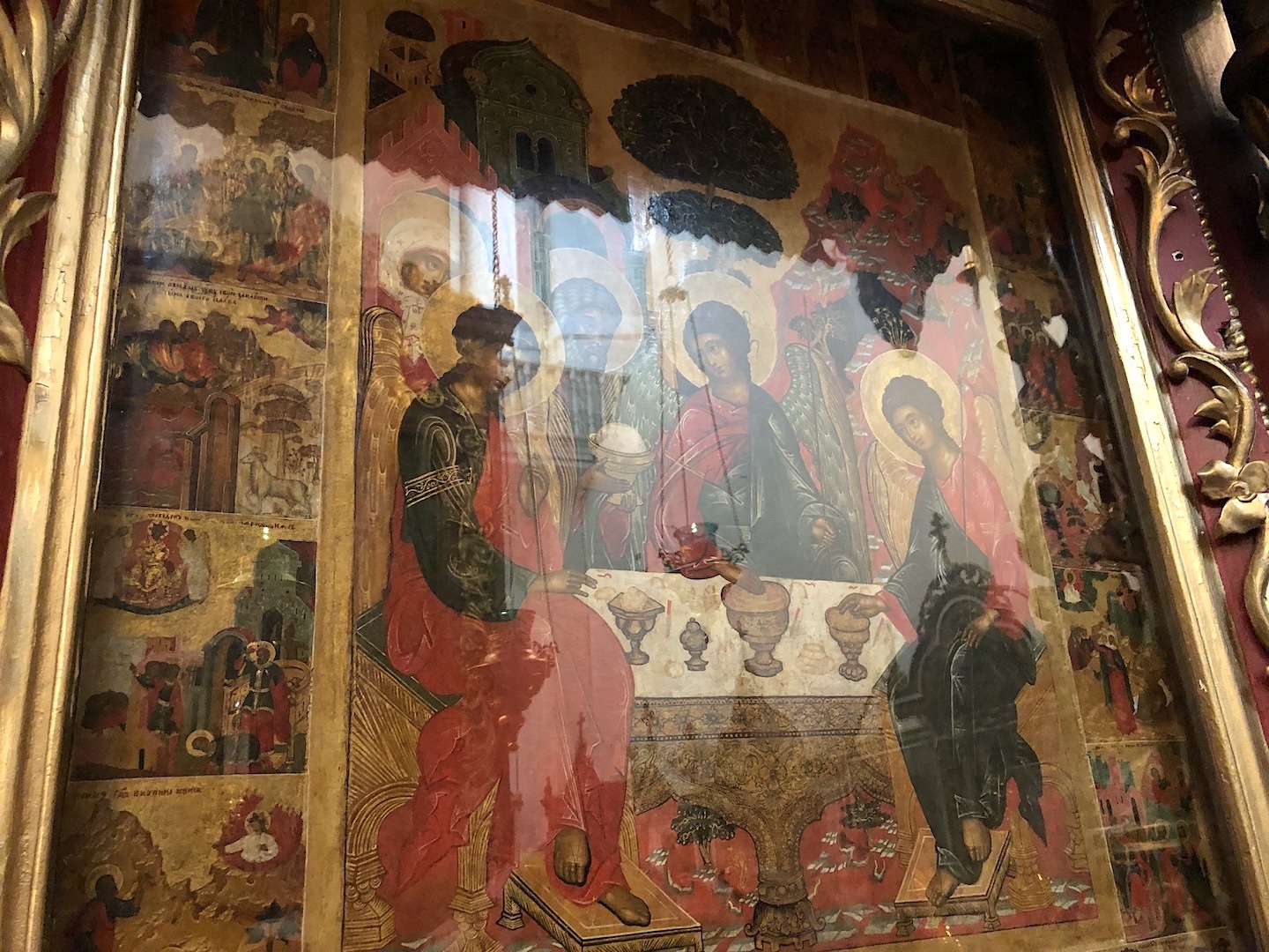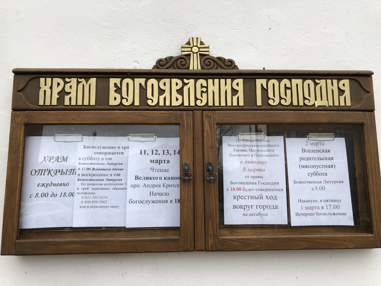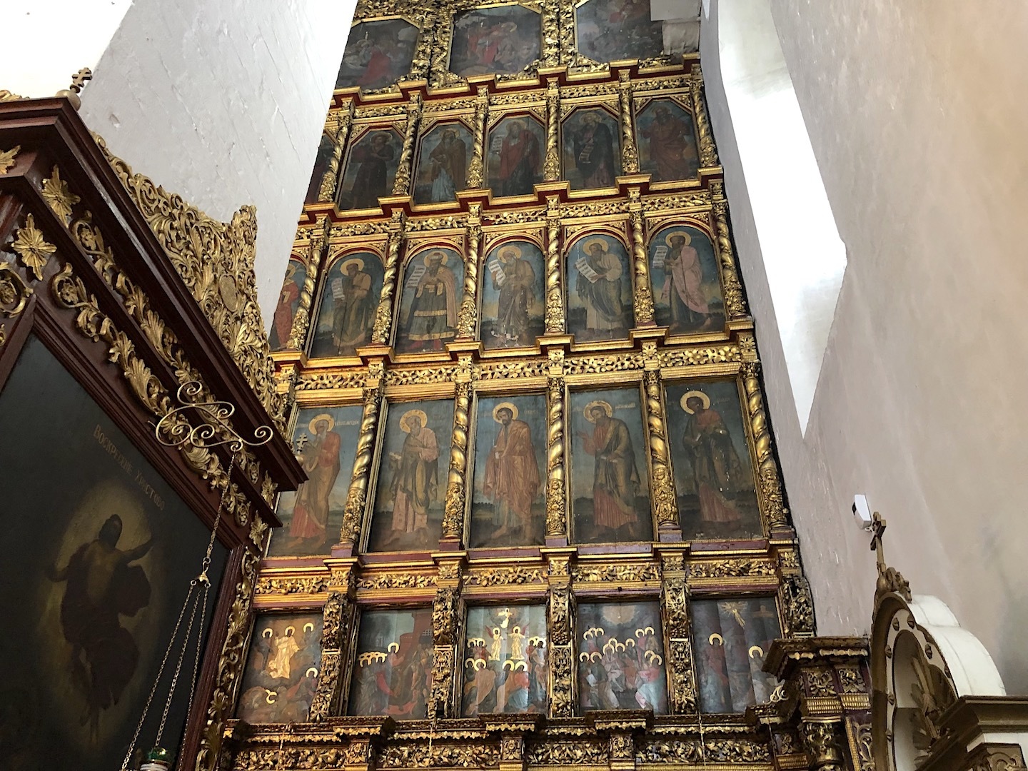 The revered shrine of the church – cancer with the relics of the saints: the blessed Princes Vsevolod-Gabriel, Dovmont-Timothy, St. Blas. St. Nicholas the Fool for Christ’s sake, and St. Nicholas the Fool for Christ’s sake. Joasaph the Abbot of Snetogorsky, as well as the Miraculous Icons of the Mother of God.