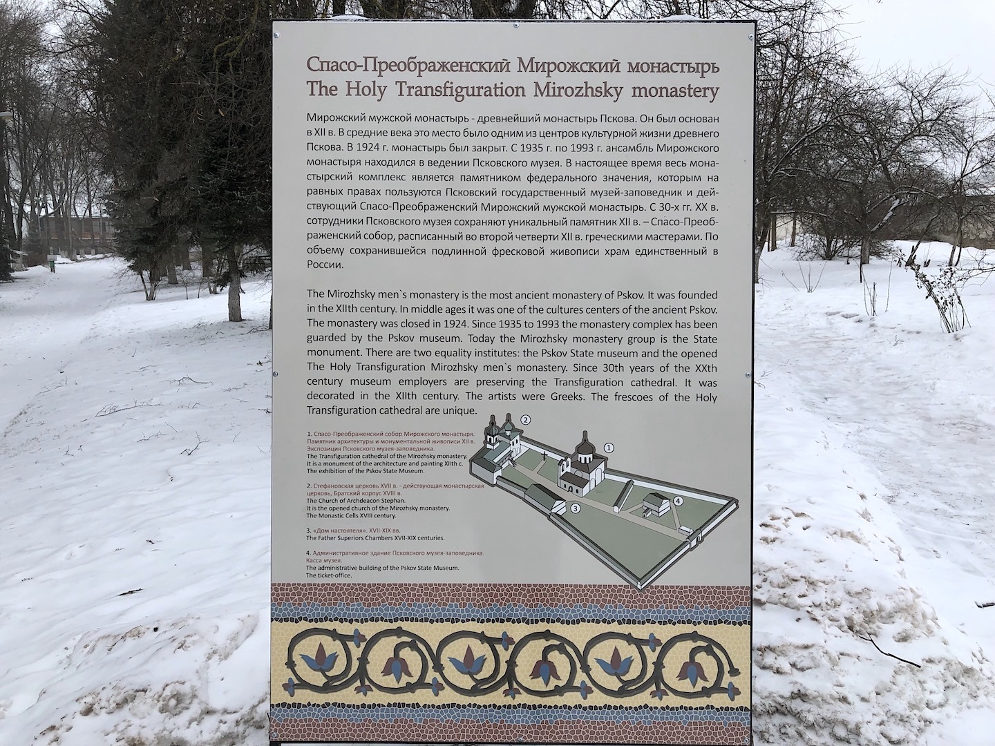 The first monastery appeared in the Mirozhsky monastery in 1156. Gradually, there were more and more monasteries – Snetogorsky, Spaso-Eliazarovsky, Krypetsky monasteries, and Nikandrova deserts. Life in these abodes is now being revived. The Pechersk and Svyatogorsky monasteries became a place of special pilgrimage for Orthodox people.